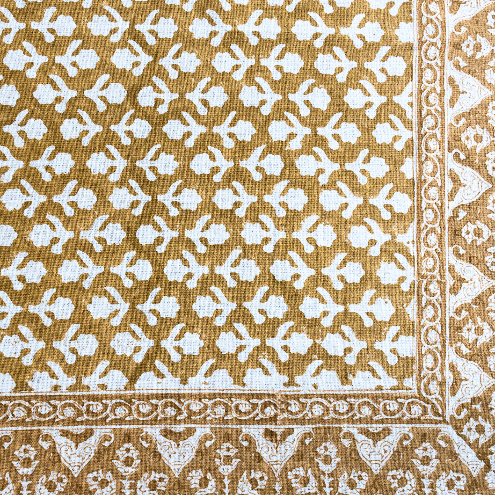 Caramel Block Print Tablecloth