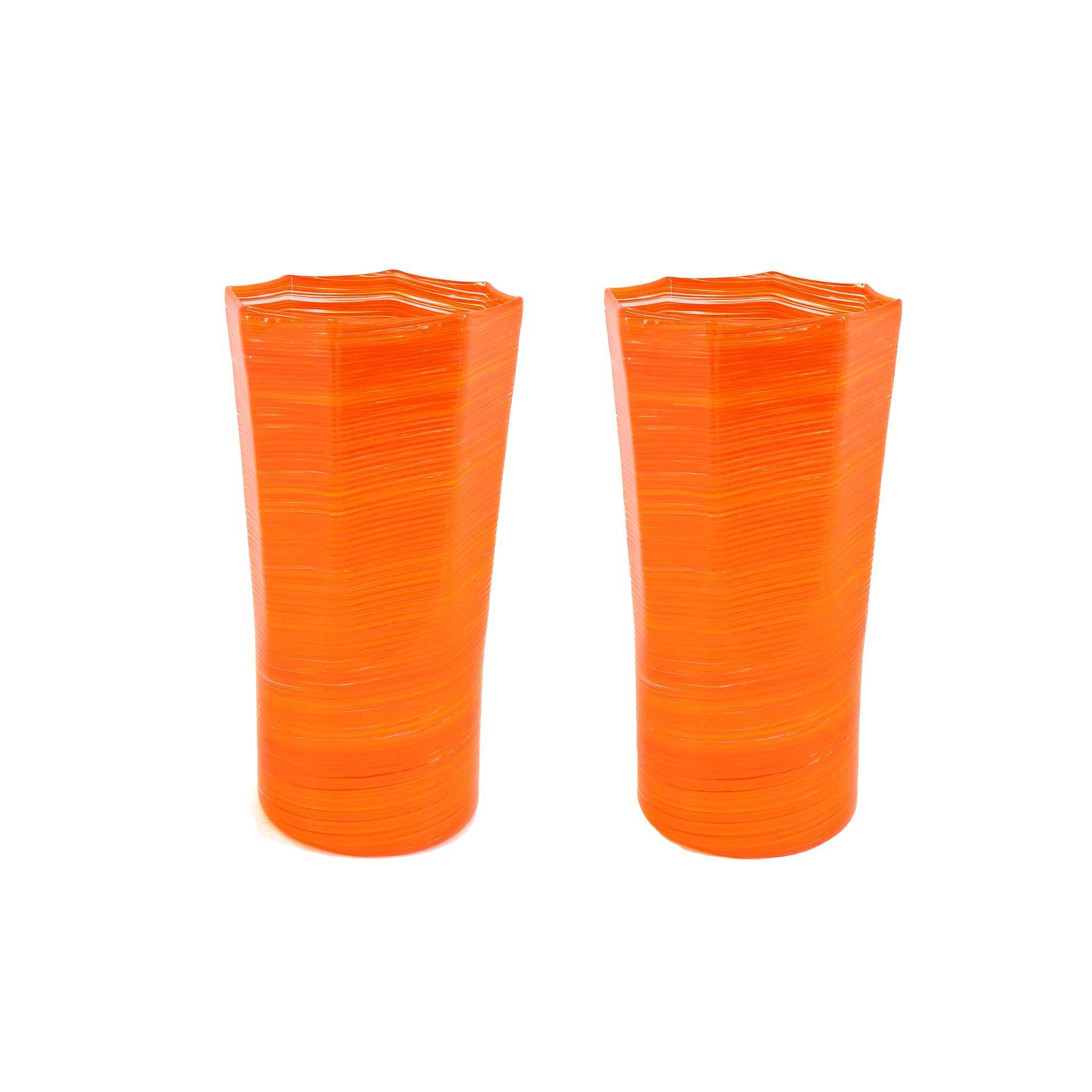 Pair of Hand Blown Octagonal Tall Glasses Orange